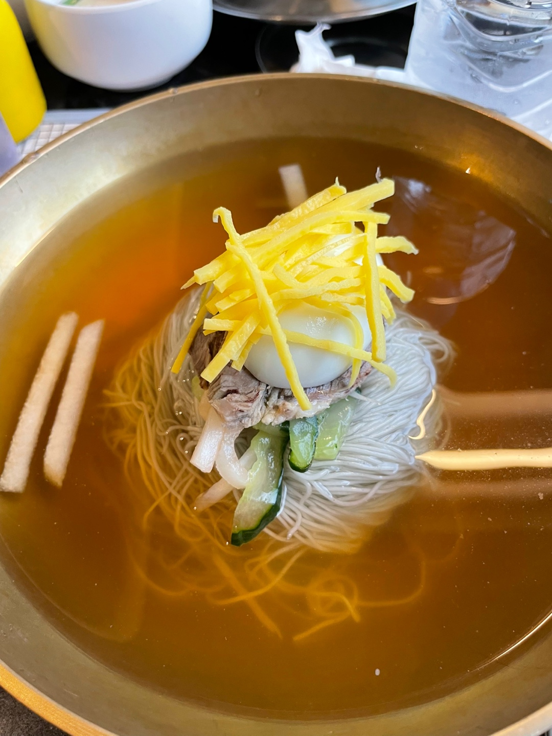 여기 냉면은 육수도 진하고 면발이 탱탱해서, 고기랑 먹어도 밀리지 않아요.