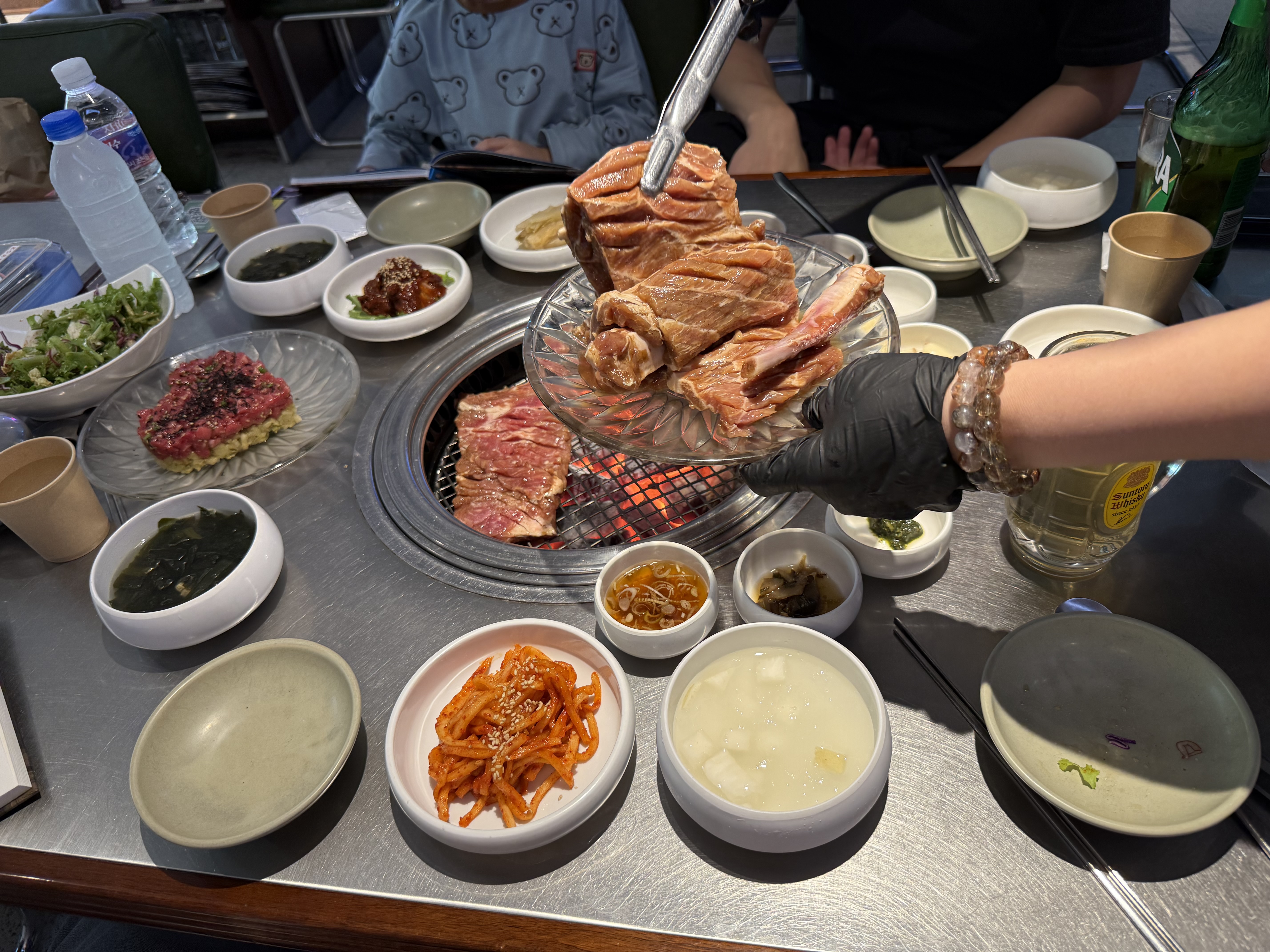 저희는 돼지갈비, 육회, 순두부찌개, 비빔냉면, 그리고 하이볼을 주문했어요. 메뉴 하나하나가 정말 만족스러웠습니다.